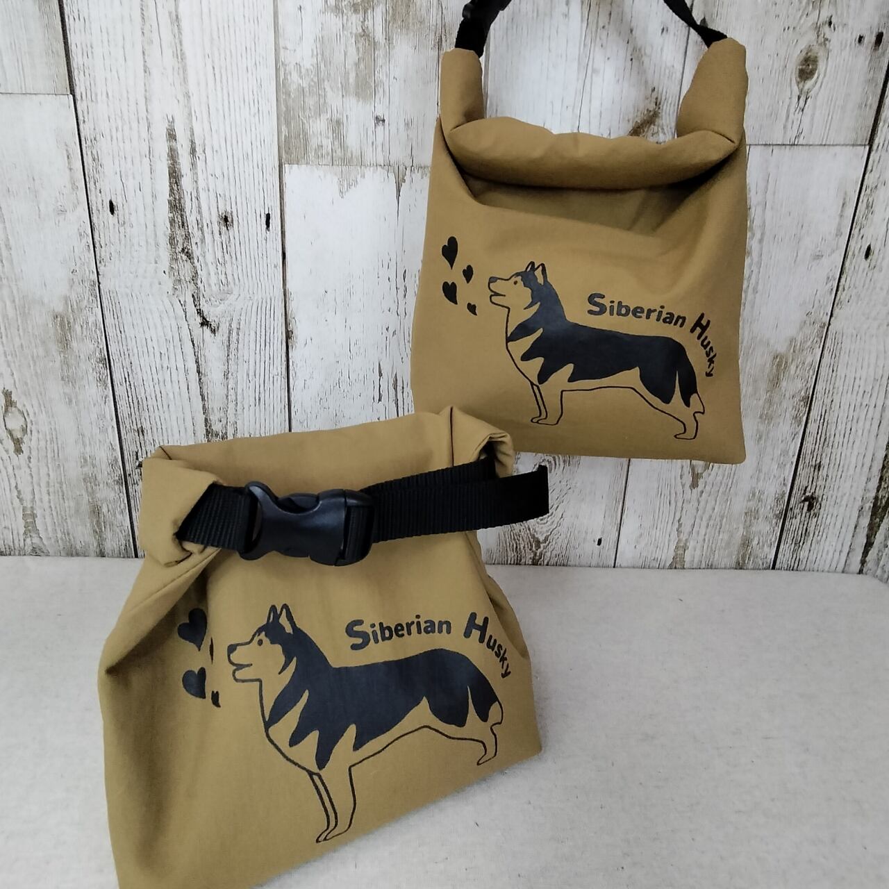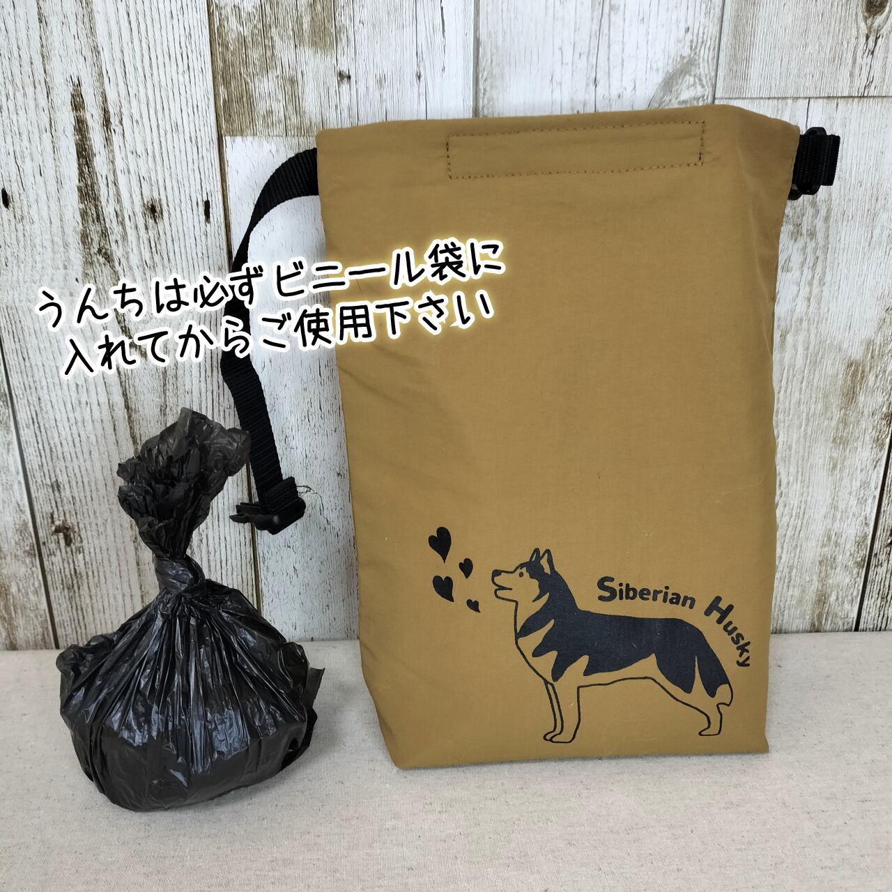 歌うハスキー柄のうんちバッグです