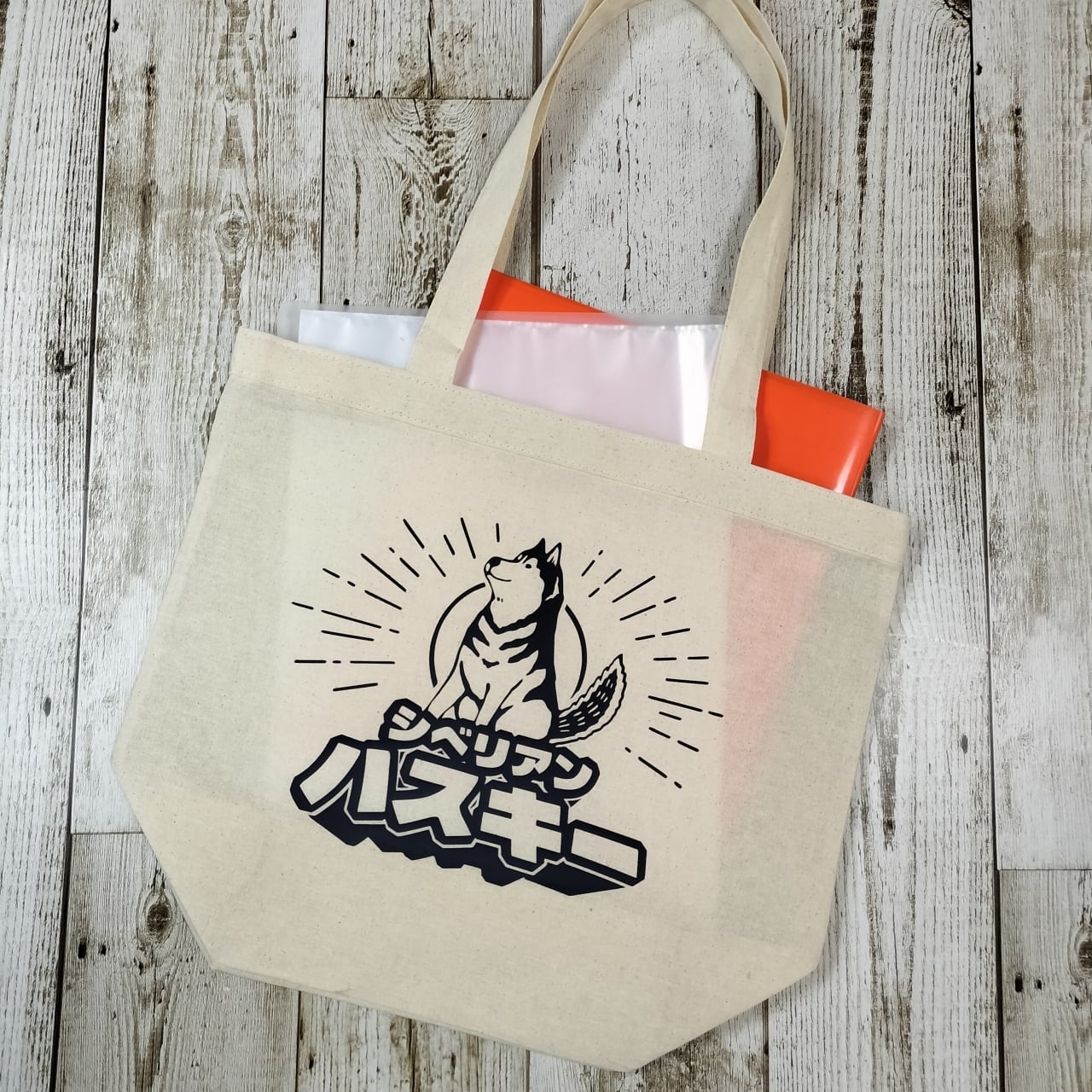 <ハスキー&ロゴ>薄手トートバッグ:マチあり